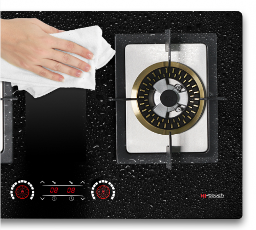 值得一提的是,火王触屏灶表面是一块平整的黑晶玻璃面板,不像传统灶,容易藏污纳垢,难以清洁。火王触屏灶的日常清洁,只要抹布一擦,15秒就能光亮如新。