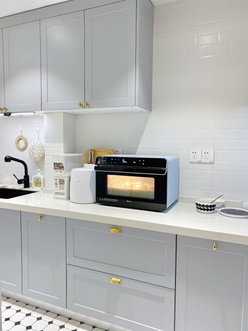 因为厨房台面小,Linda从一开始就在考虑买一体机,省地方!不然买了蒸锅、煮锅、烤箱下来,以后再添置别的厨具,根本没有空间。在做足了功课之后,Linda从众多一体机中选中了大厨牌蒸烤炸一体机——灵动小巧的外观,精致的触控面板,简约大气的设计,一眼就俘获了她的心,除了她选择的海盐蓝,还有柠檬青和树莓红两种颜色,都是妥妥的颜值担当。