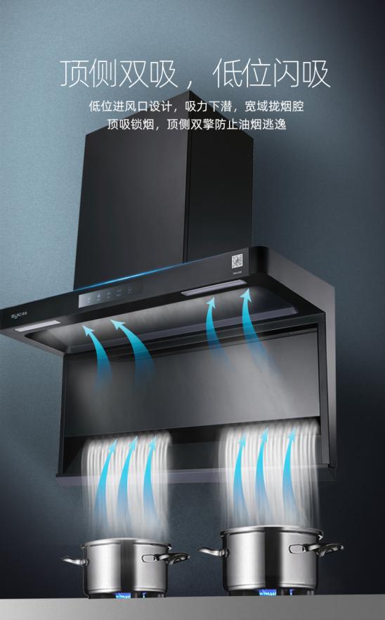 作为中国厨房电器十大品牌,索奇推出的L310烟机。除了清洁和智能方面的贴心设计,吸力这方面也是值得大家所关注的。它采用低位进风口设计,吸力下潜,顶侧双擎。二合一全方位围剿油烟防止油烟逃逸,高效净烟保持厨房洁净。而烟机净烟效果,主要看两个因素:排风量和风压。索奇L310烟机排风量最高可达20m³/min搭配430Pa超大静压完美组合,从容应对排烟难的问题,油烟不倒灌!