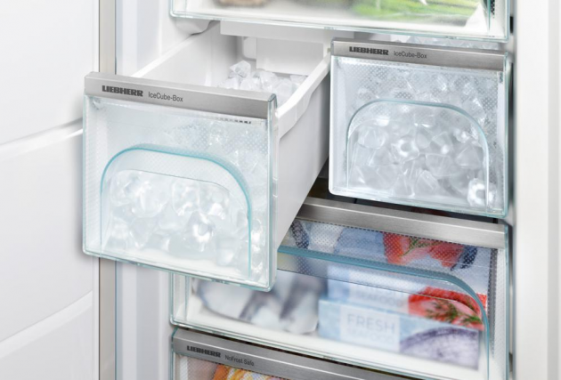 Liebherr利勃海尔新一代BluPerformance采用先进的冷冻技术,设计了带固定水管连接的制冰机,其新设计的风道可以实现制冰量的增加 (1kg/24h/-18℃),侧边开口也更好的让空气循环以便避免 “过度” 结冰,能够持久冷冻贮存食物和食材。
