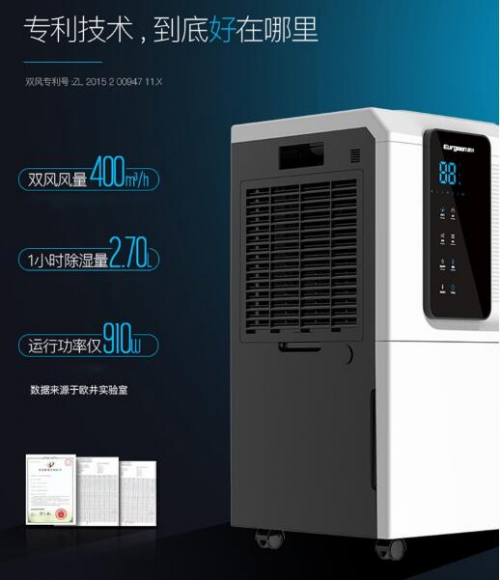 欧井OJ-652E除湿机是给你最强劲的除湿。除湿量65升/天,除湿面积30—130平米,适合全屋除湿。且采用双风吸湿系统,双面进风,双面两器工作除湿,普通除湿机只有单面两器除湿,除湿效率比普通除湿机快1倍。双面风量400m³/h,1小时除湿量就有2.7L,除湿效率可见一斑。
