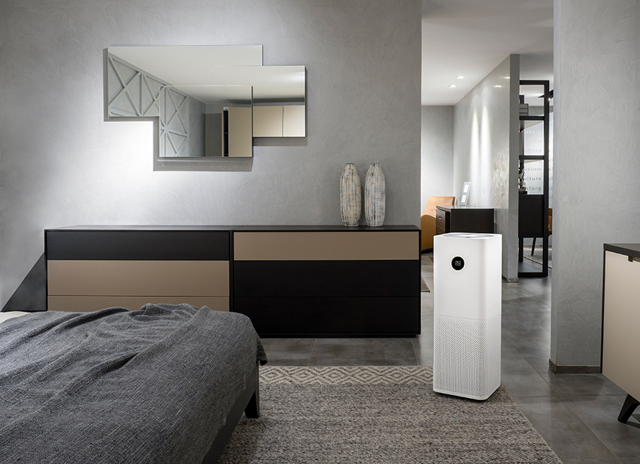 主卧空间大,米家空气净化器Pro再合适不过。99.98%的H1N1病毒去除率、99.9%除菌率,对甲醛、异味、TVOC等等污染物都具备净化效果。他的净化力最大可适用于60㎡的空间,放在客厅也可以。