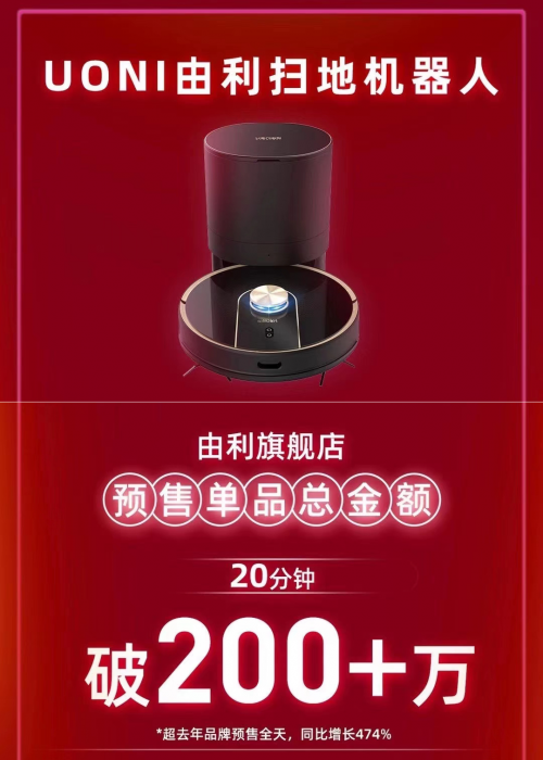 其中,在由利天猫旗舰店的预售中,自动集尘扫地机器人V980 Plus预定超750台,预定销售额破200万;而在由利海外旗舰店,扫地机器人V980 Plus与擦窗机器人组合的扫擦组合品,其预定量超550台,预定销售额破200万。