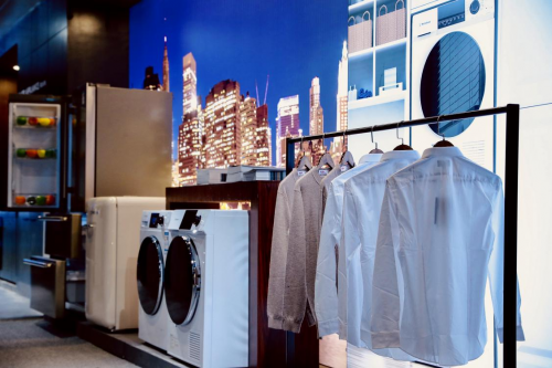 冰洗系列一直是西屋电气的代表性产品系列,洗烘套装解放了无数家庭的阳台,创造了家庭洗衣新时代。此次展会上,西屋电气展出了衣物护理机、嵌入式酒柜、壁挂洗衣机等多款产品,其中壁挂洗衣机为西屋推出的新品,悬挂式设计更能合理礼用空间,是迷你洗衣房的首选产品。