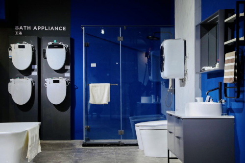 西屋卫浴系列是一组高颜值产品,浴室柜、智能马桶一体机和浴缸成列其中,WFA012款浴缸作为此次西屋的新品代表参展,流畅的线条富有美感吸引了很多观众前往欣赏。