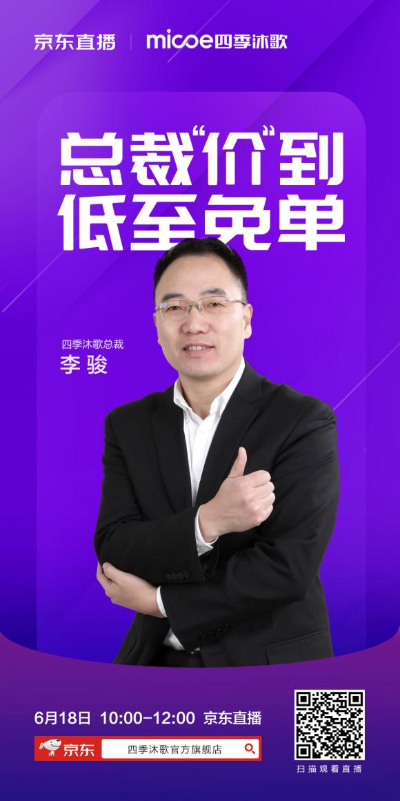 四季沐歌20年来一直致力于为用户提供高品质产品和服务,打造健康环保有品位的生活方式。此次618大促,四季沐歌在助力家电市场年中“购物潮”的同时,也将为消费者和粉丝们带来真正的福利,让每一个消费者都能在618期间逛的开心,买的痛快!更多惊喜敬请关注京东直播,锁定四季沐歌6.18AM10:00—12:00!