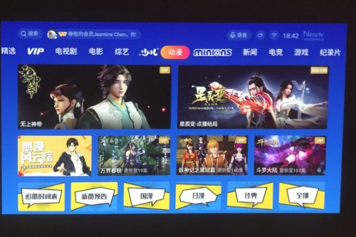 打开机器,经过一番初始设置之后,小编就进入到了资源的主菜单。仔细看看内容资源还是非常能打的,有海量包括腾讯独家的影视剧、电影、动漫、自制内容、还有最近例如《创造营》之类的大热综艺。