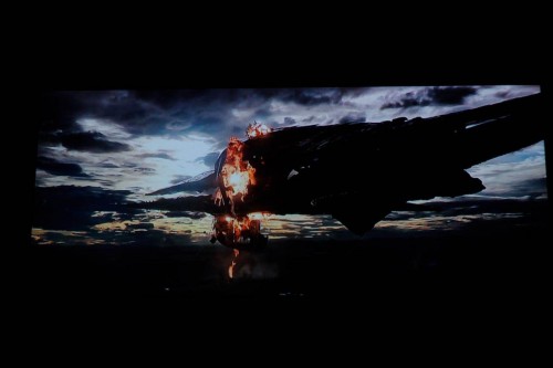 打开一部影片投影到墙上,果然画面是非常清晰的,没有任何颗粒感,色彩还原度很高,音箱效果也不错。亮度可调节,即使是在白天,拉上窗帘观影效果也OK。