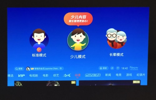 对于有孩子的家庭,这款投影仪还可以切换到儿童模式,过滤出适宜儿童观看的内容。其中,极光TV还为这款投影仪打造了儿童专属的UI页面,打开界面,幼儿益智、儿歌、低幼故事、早教、学前益智等内容应有尽有,这些内容用来闲暇时间和孩子一起互动真是再合适不过了。