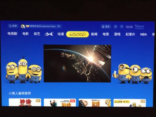 不仅如此,系统里还有一个专门的「Minions」板块,这是由极光TV为小黄人投影仪专属打造的UI页面,里面是小黄人全系列的影片,作为小黄人的真爱粉,可以一次看个爽!